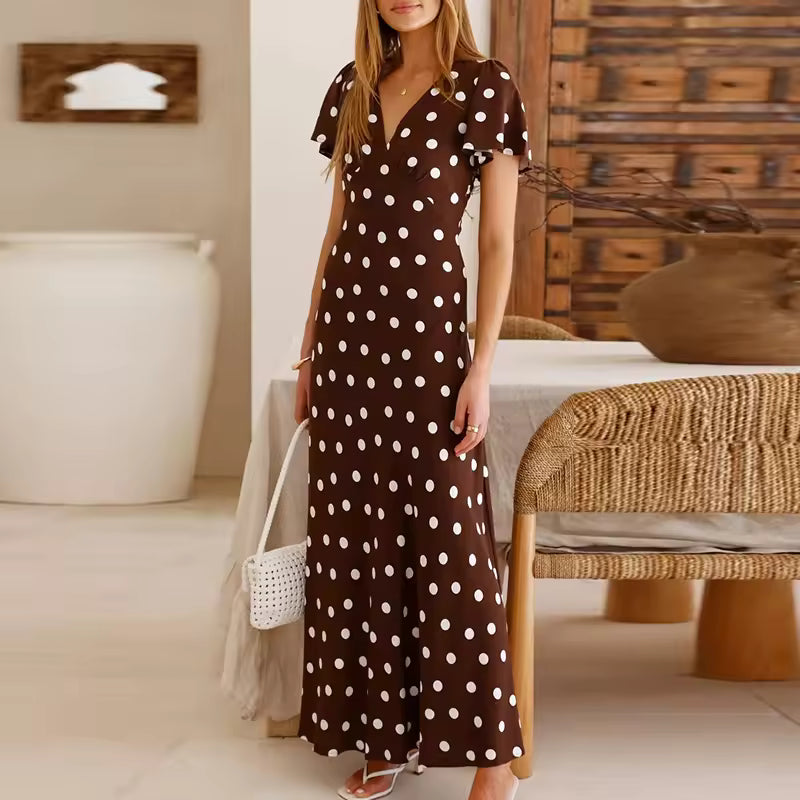 Designed with a soft V-neck, this dress enhances your neckline while offering a chic and elegant appeal. The slim-fit cut gently follows your shape without being tight, giving you a confident and graceful look.