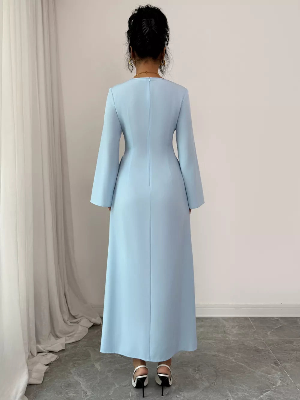 The square neckline offers a refined, vintage-inspired look, balanced by long sleeves that bring graceful coverage. Together, they create a polished silhouette that feels both classic and contemporary.